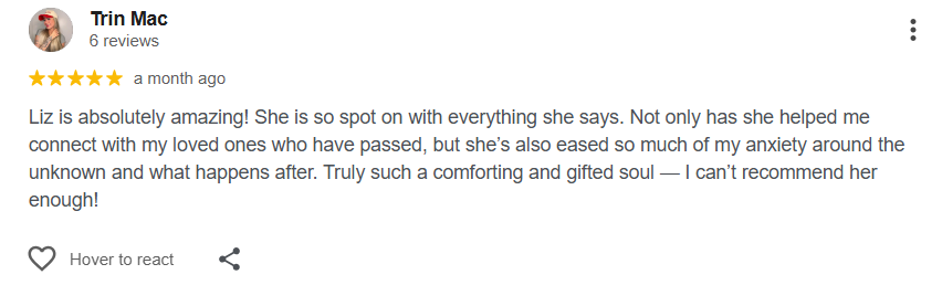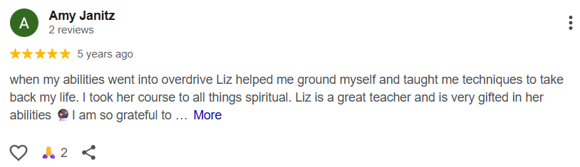 Connection. Integrity. Empowerment. Explore Liz's offerings - all aligned with The Psychic Associates' standards for ethical evidence-informed practice.
